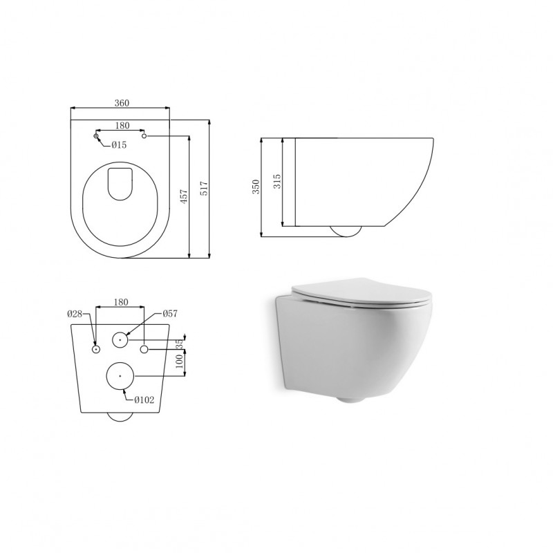 1) Унітаз підвісний Devit Universal 36х51.7 см безободковий кераміка білий