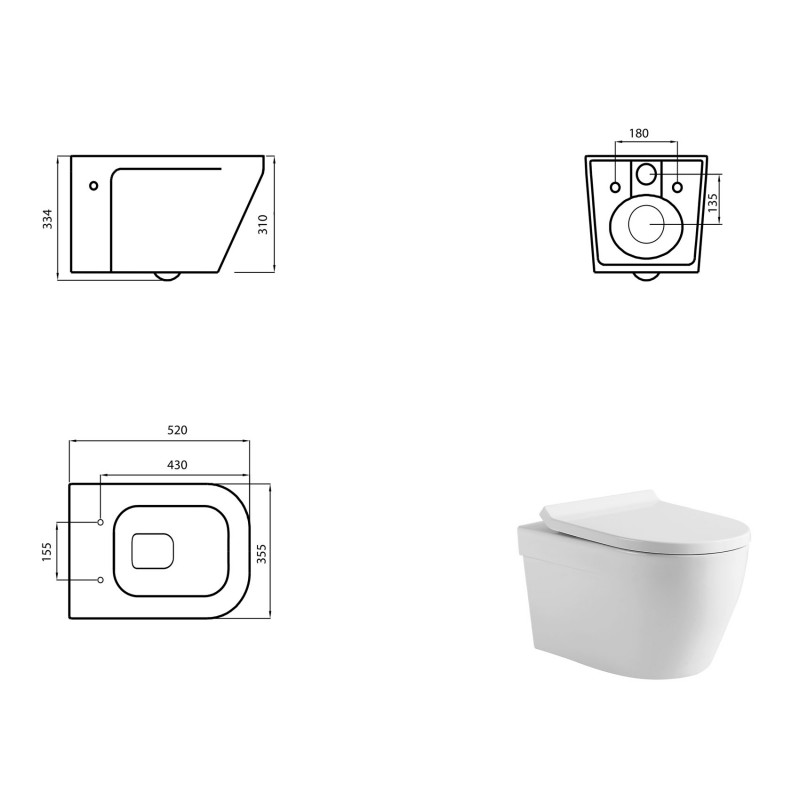 1) Унітаз підвісний Devit UP 35.5х52 см безободковий санфаянс білий