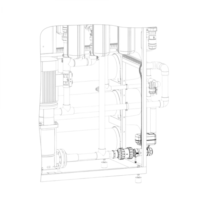 - Монтаж вузла промивання пермеатом може бути виконано на встановлену та введену вексплуатацію системи з використанням мінімальної кількості інструментів.