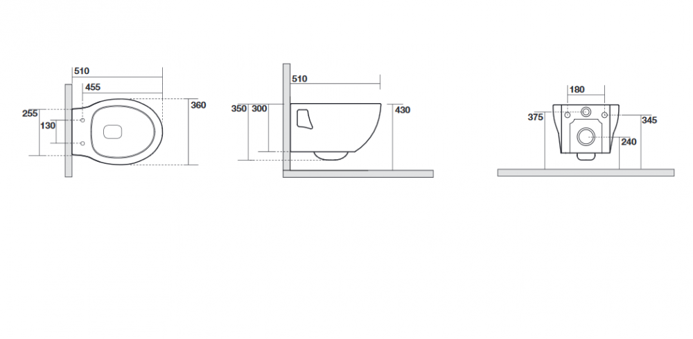 - Розмір унітазу (ВхГхШ): 350х510х360 мм