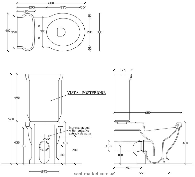 Унітаз-компакт Galassia Ethos підлоговий з бачком та кнопкою змиву білий 8441