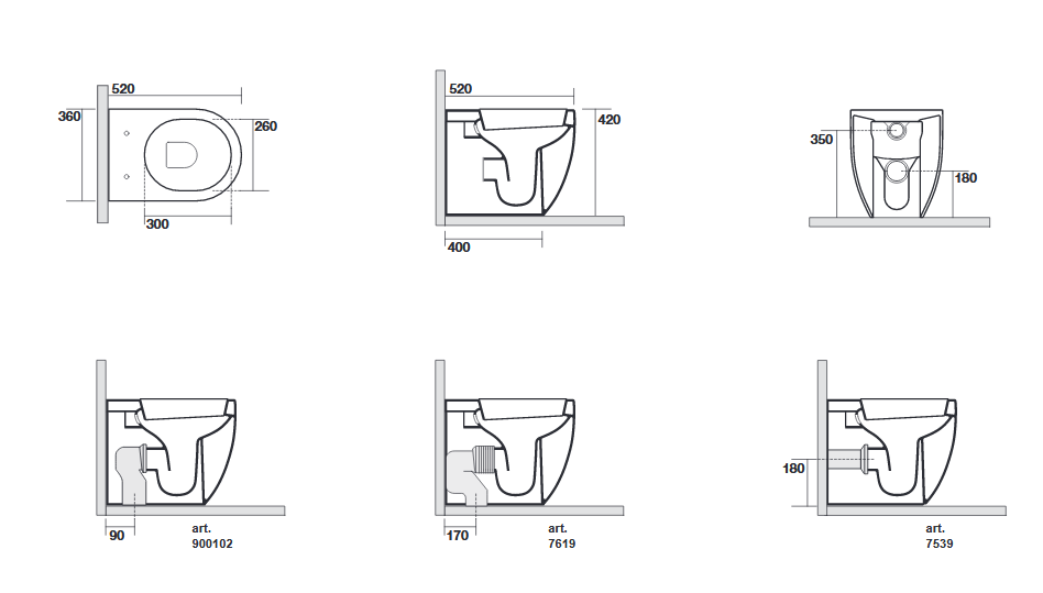 - Розмір унітазу (ГхВхШ): 520х420х360 мм