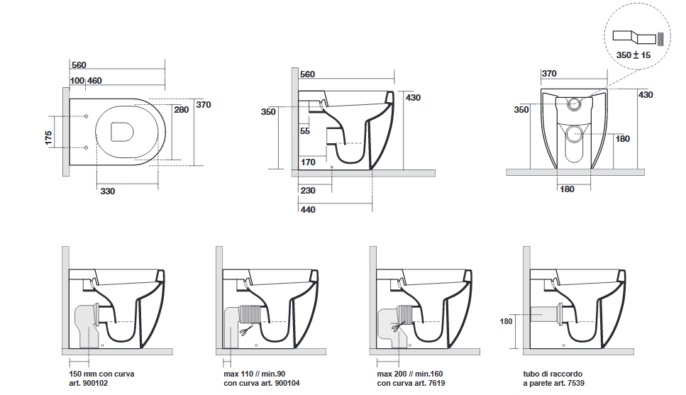- Розмірунітазу (ГхВхШ): 560х430х370 мм