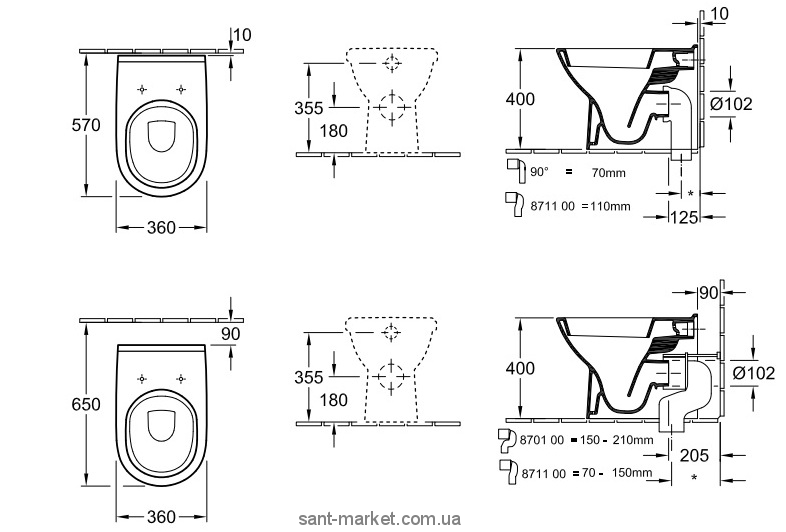 1) Чаша унітазу V illeroy & Boch колекція O.Novo 56571001
