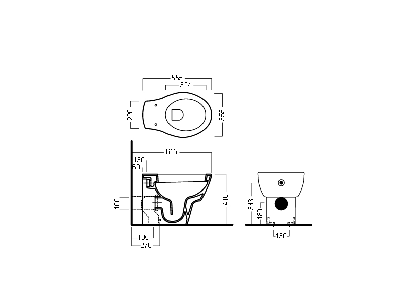 NIDOУнітаз приставних, універсальний слив, розмір 55х35.5 см, колір білий