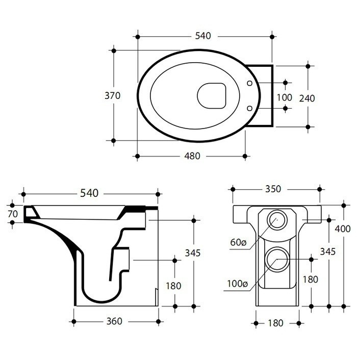 • Унітаз підлоговий приставний , розмір 400х540х370 мм.