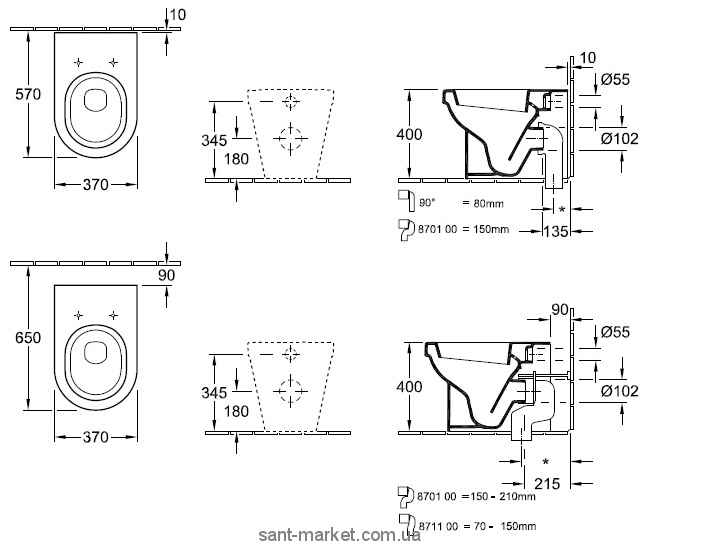 1) Чаша унітазу Villeroy & B och колекція Omnia Architectura 56751001