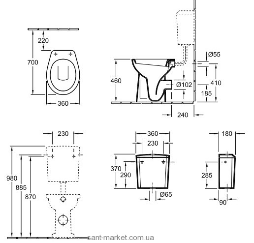 - сидіння з кришкою Villeroy & Boch, з Duroplast, кріплення з нержавіючої сталі зі спеціальними буферами проти зміщення вбік, з ободом на кришці, з функцією QuickRelease та SoftClosing, білий альпін (арт.88216101).