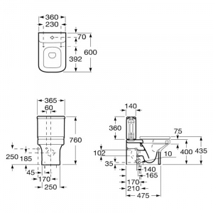 1) Унітаз підлоговий пристінний Roca Dama-N Rimless 36х60 см кераміка білий