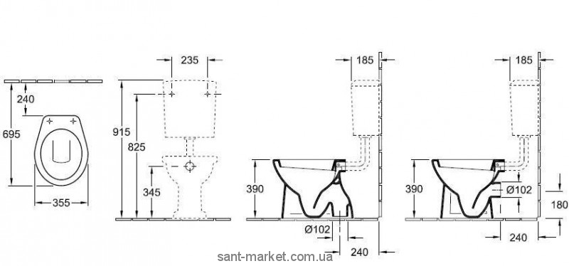 1) Чаша унітазу Villeroy & Boch колекція O.Novo 76180101