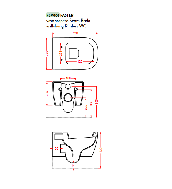 Унітаз підвісний ArtCeram Faster 36,5х53 см білий глянсовий FSV003 01; 00
