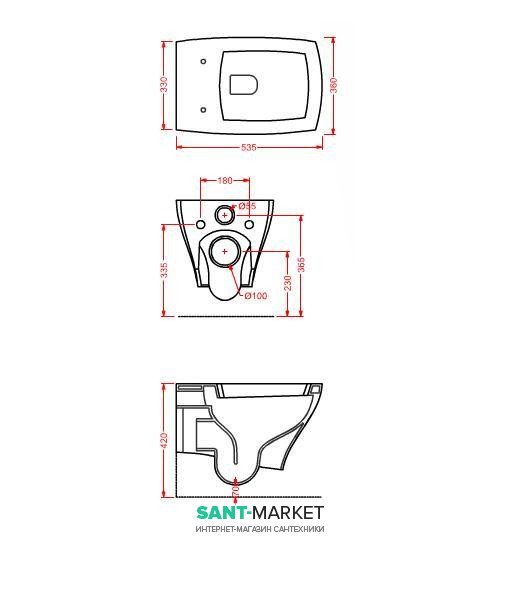 1) Унітаз підвісний ArtCeram Jazz 360х540 см білий JZV001