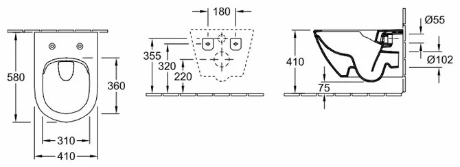 1) Унітаз підвісний безободковий Villeroy & Boch Vivia санфарфор білий