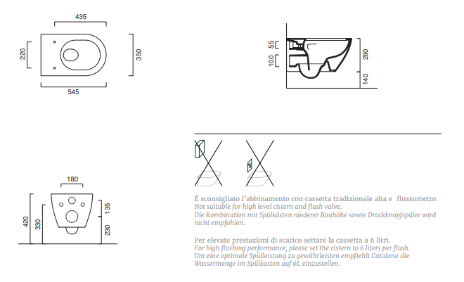 - У сучасному дизайні типологічна еволюція продукції завжди прагне до інтеграції з технологічною інновацією, до збільшення функціональності і ефективності. У такому ж руслі розвивається проект NEWFLUSH ™ від Catalano: винахід, яке зробило революцію в ефективності і функціональності керамічних унітазів. Вихрова система зливу, яка максимально ефективно використовує наявну кількість води, а, завдяки відсутності обідка, очистку виконувати набагато легше і ефективніше. Увага до навколишнього середовища, кращу якість кераміки, гігієнічність і економічність - є основними характеристиками цього проекту,який сьогодні повністю втілився в 3 виробах від Catalano.