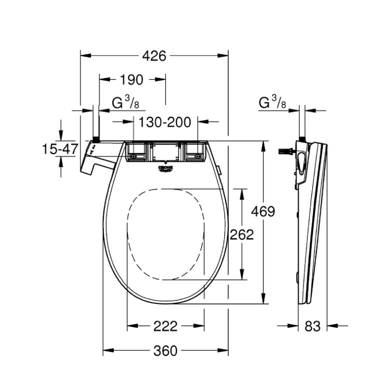 Витакож можете додати термостат Grohtherm Micro (34487000), якщо хочете подавати теплу воду! Для повного комфорту і ефективності, сидіння для біде поставляється з двома розпилювачами, які обидва мають регульований напір - задній розпилювач і ніжний жіночий душ з більш широким малюнком розпилення.