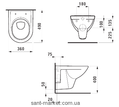 1) Чаша унітазу Laufen колекція PRO 8.2095.2.000.000.1