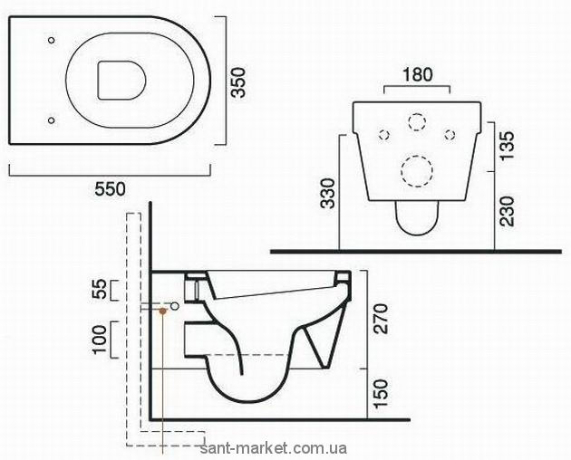 Унітаз підвісний під інсталяцію Catalano колекція Zero VS55