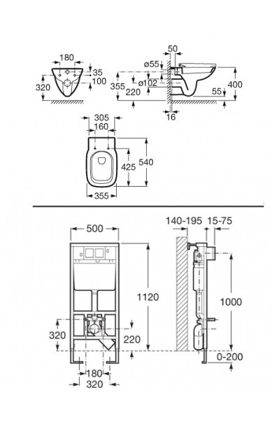 - Мінімальна відстань кріплення від стіни - 140 мм
