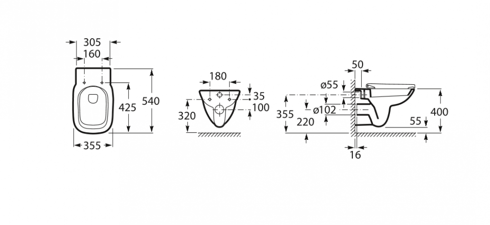 1) Унітаз підвісний Roca Debba з горизонтальним випуском кераміка білий