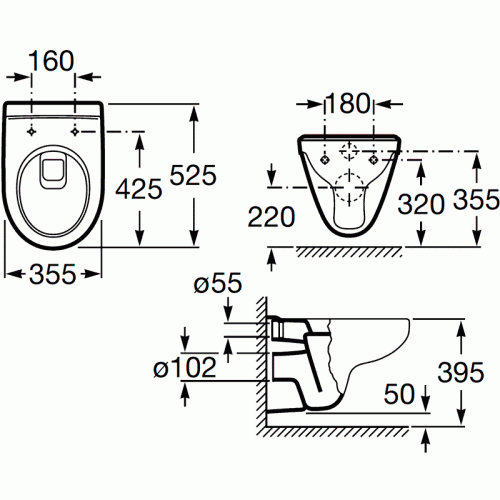 1) Унітаз підвісний Roca Victoria 52.5х35.5 кераміка білий