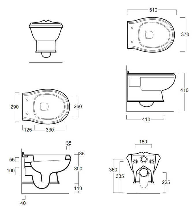 1) Унітаз підвісний Simas Arcade 37х51 см