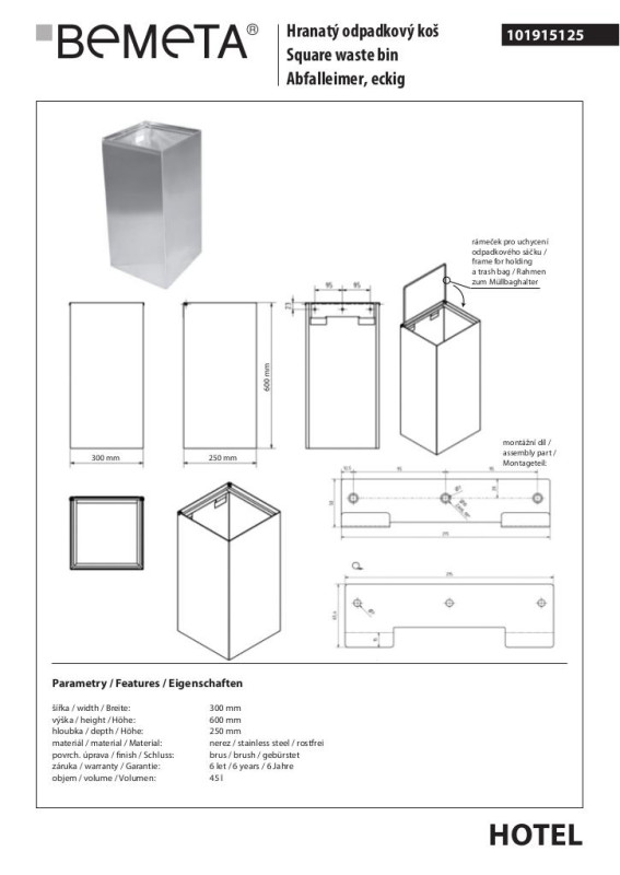 Відро для сміття Bemeta Hotel настінне 45 л нержавіюча сталь хром матовий 101915125