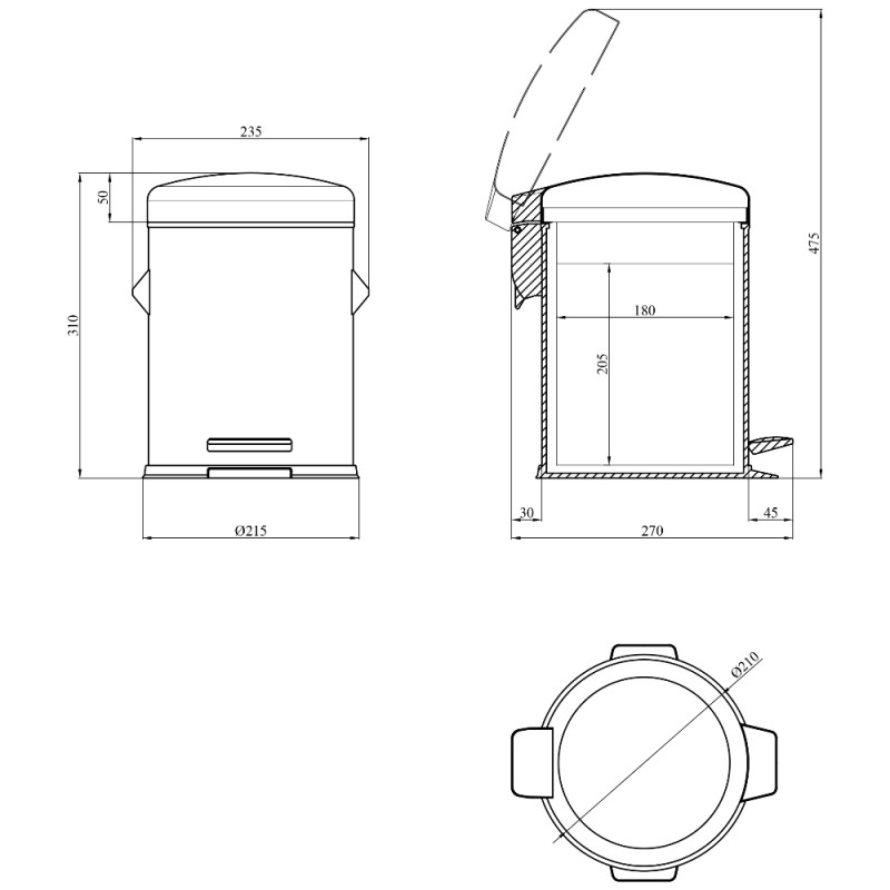Відро для сміття Kroner KRP Graz - C406 5 лє практичним і довговічним рішенням для вашого дому чи офісу. Корпус виготовлений з нержавіючої сталі, стійкої до вологи, корозії тамеханічні пошкодження. Завдяки педальному механізму кришка відкривається без дотику руками, забезпечуючи максимальну гігієнічність. Компактний об'єм 5 літрів і стильний дизайн роблять відро зручним і естетичним елементом інтер'єру.