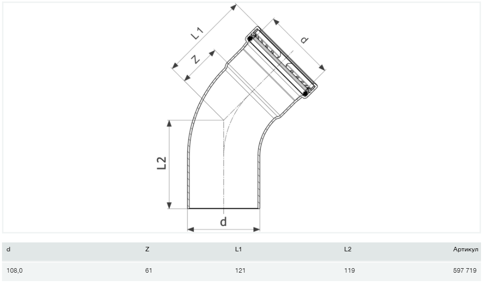 1) Відведення 45 ° Viega Prestabo XL 1126.1XL 108 нелегована сталь