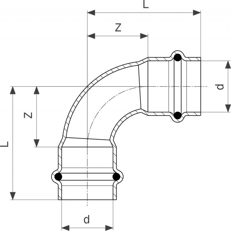 1) Відведення 90 ° Viega Sanpress Inox G 0216 з SC-Contur d22 нержавіюча сталь