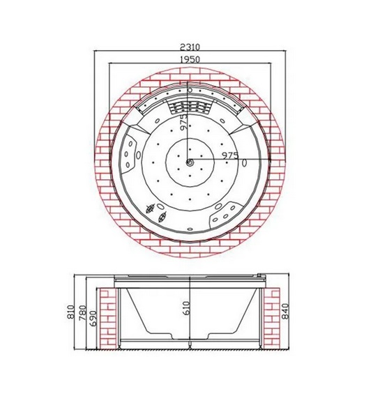Ванна аеро- і гідромасажна акрилова Golston 195х195 вбудована білий