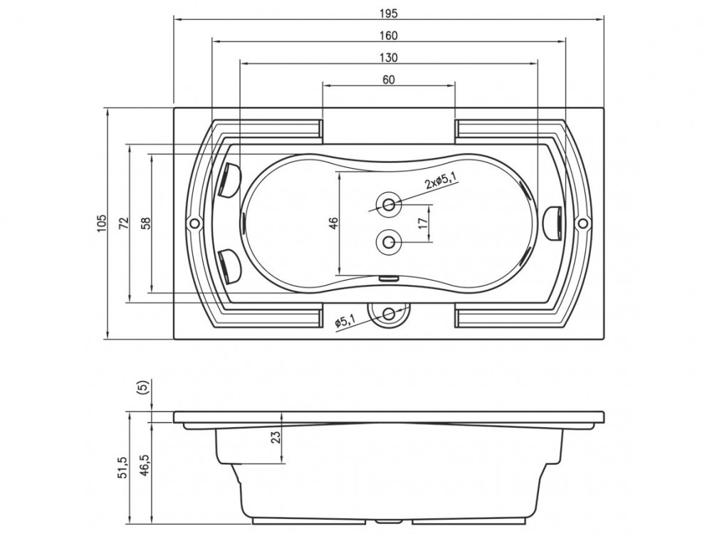 1) Ванна аеро- і гідромасажна акрилова Riho Lisette 195х105 см білий