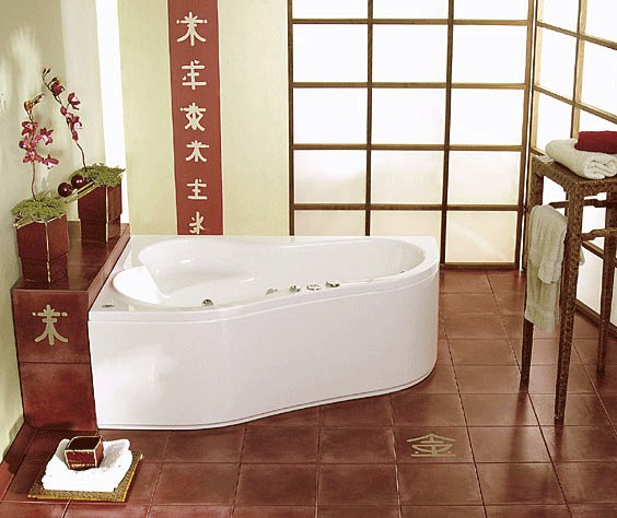 Оригінальний стиль виконання асиметричною акрилової ванни, у якій видима сторона виготовлена у вигляді хвилі цілком може стати прикрасою Вашої ванної кімнати. Крім красивого зовнішньоговиду, цей дизайн ще й принесе Вам комфортне прийняття душу, так як ванна випускається у відносно невеликих розмірах.