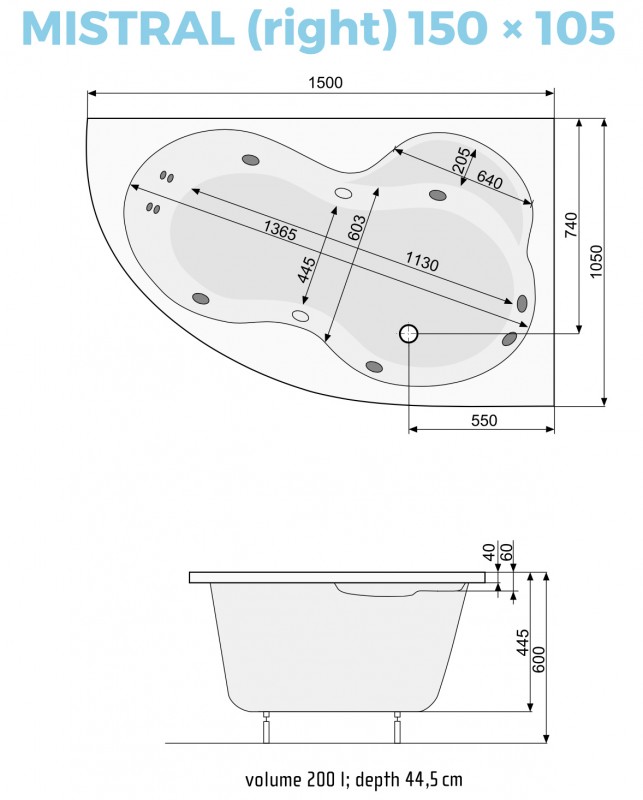 Надзвичайне стилістичне рішення подарувало нам ванну PoolSpa Mistral. Strong> Внутрішній простір ванни PoolSpa Mistral досить містке, має красиву форму. Така форма дозволяє відокремити половину ванни спеціальної шторкою і використовувати ванну так само і для прийняття душу.