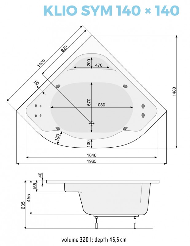 Кутова симетрична ванна Klio Sym 140х140 виконана з акрилу. Дуже цікава модель ванни доповнюється не менш цікавим дизайном лицьовій панелі. Така ванна підходить для установки в кутку просторих приміщень. Існує кілька видів гідромасажу для ванни PoolSpa Klio Sym 140х140 , які були розроблені спеціально для даної лінії ванн.Внутрішній простір ванни зроблено в красивій хвилеподібною формі, яка підкреслена широкою кромкою зовнішньої стінки ванни.