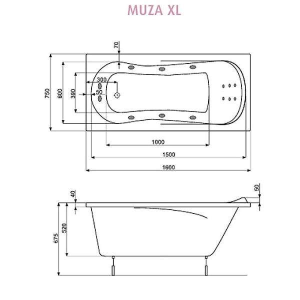 1) Ванна аеро- і гідромасажна акрилова прямокутна PoolSpa Muza XL 160х75 система Smart 2 білий