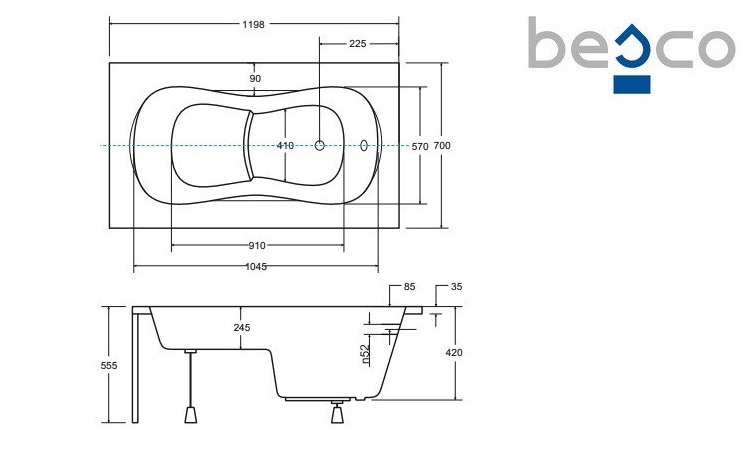 Ванна акрилова Besco Aria 120х70 см білий глянсовий WAR-120-PA