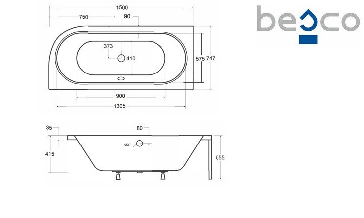 Ванна акрилова Besco Avita 150х75 см лівостороння глянсовий білий WAV-150-NL
