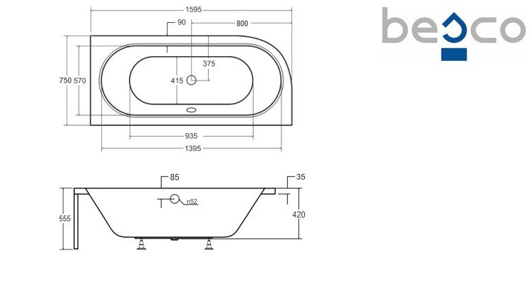 Ванна акрилова Besco Avita 160х75 см правостороння глянсовий білий WAV-160-NP