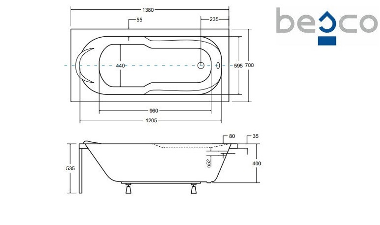 Ванна акрилова Besco Bona 140х70 см глянсовий білий WAB-140-PK