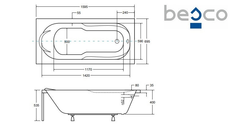 акрилова ванна besco bona 160x70 см глянсовий білий