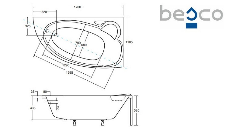 акриловий besco finezja nova 170x110 см. Глянцевий глянсовий білий