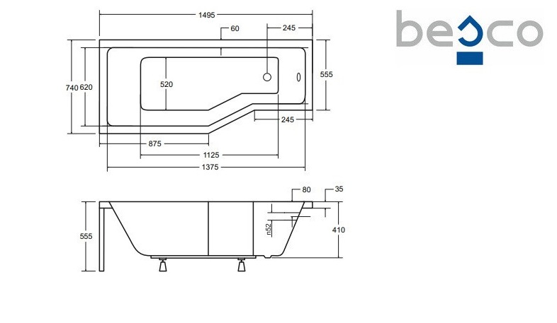 Ванна акрилова Besco Integra 150х75 см лівостороння глянсовий білий WAI-150-PL