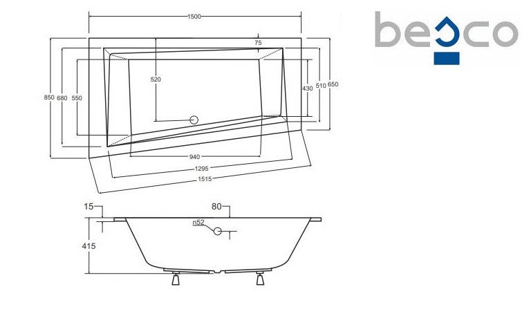 Ванна акрилова Besco Intima Duo Slim 150х85 см лівостороння глянсовий білий WAIT-150-SL