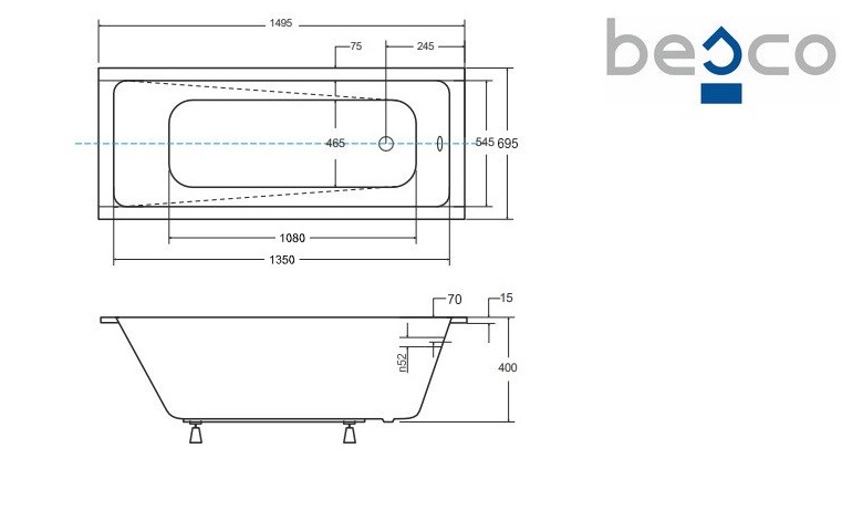 Ванна акрилова Besco Modern Slim 150х70 см білий глянсовий WAM-150-SL