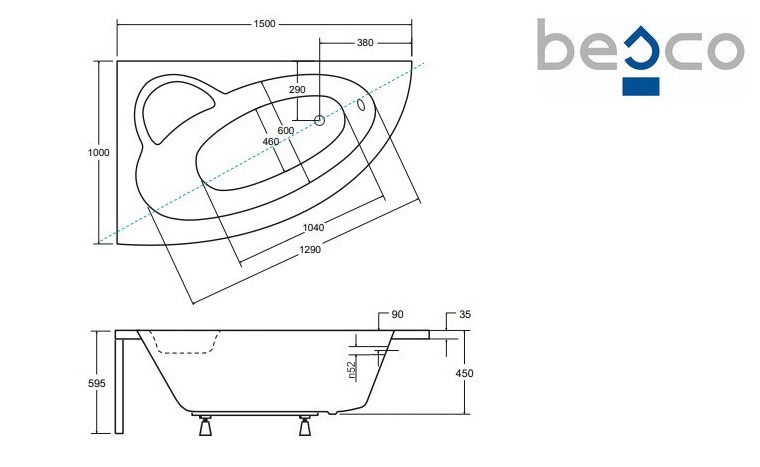 Ванна акрилова Besco Natalia 150х100 см лівостороння глянсовий білий #WAN-150-NL