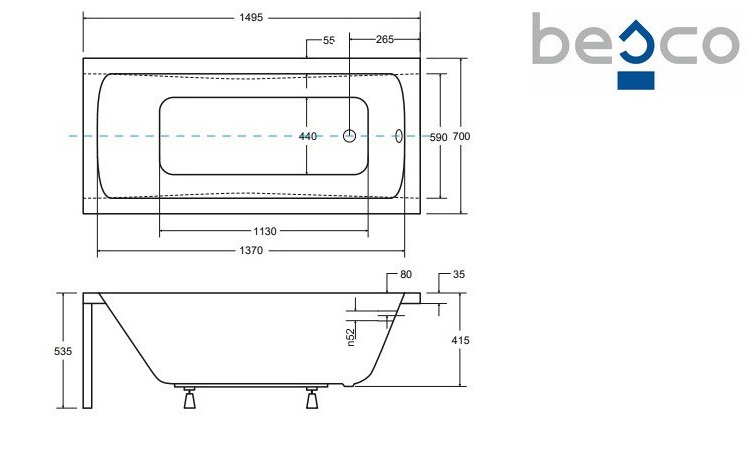 Ванна акрилова Besco Optima 160х70 см білий глянсовий WAO-160-PK