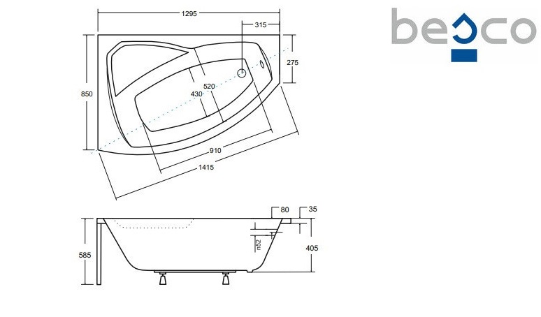 Ванна акрилова Besco Rima 130х85 см лівостороння глянсовий білий WAR-130-NL