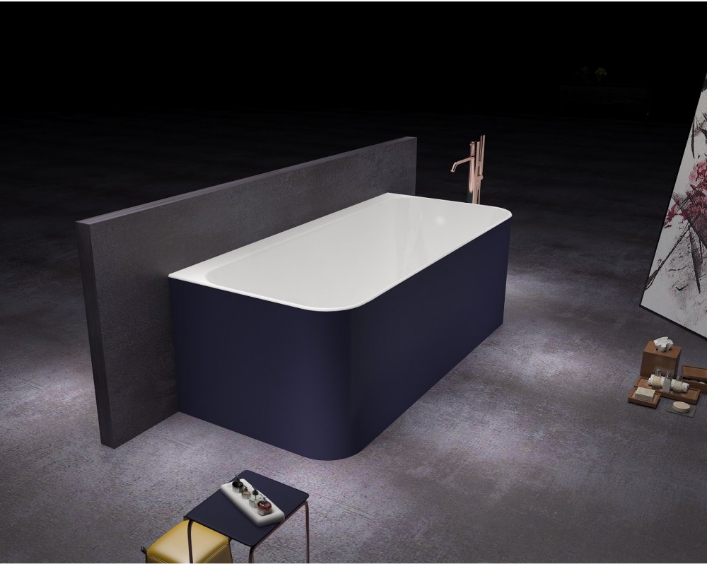 1) Ванна акрилова Devit City 170х80 см окремостояча з кольоровим фасадом темно-синій матовий / білий