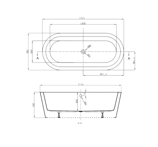 1) Ванна акрилова Devit Fresh 171.5х78.3 см окремостояча