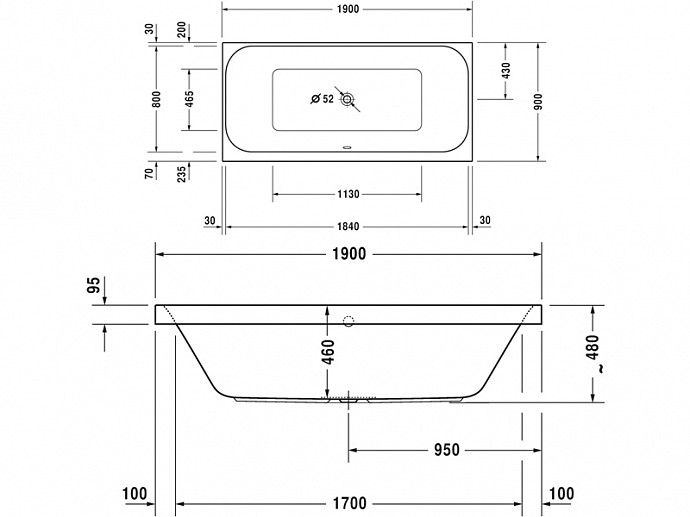 1) Ванна акрилова Duravit Happy D.2 Combi-System P гідромасажна 190х90 см білий